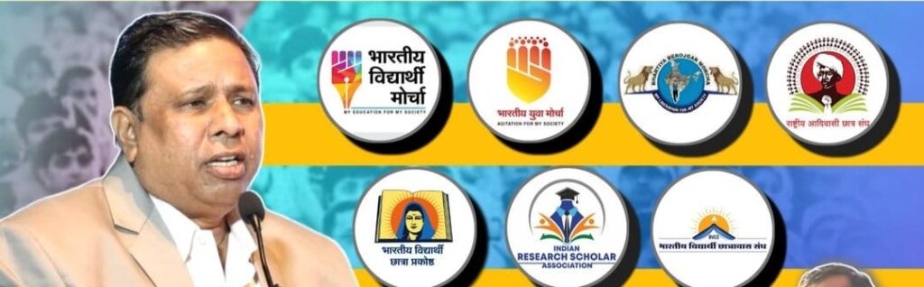 The Bhartiya Vidyarthi Morcha is the student wing of the Bharat Mukti Morcha, a national-level organization founded under the guidance of BAMCEF. This student organization was established on the birth anniversary of Mahatma Jyotiba Phule, the pioneer of the education revolution in India. In a short span of time, it has grown into a national-level platform for SC, ST, OBC, MBC, NT, VJNT, and religiously converted minority students (including Muslims, Jains, Sikhs, Buddhists, and Lingayats), who are the indigenous people of India.