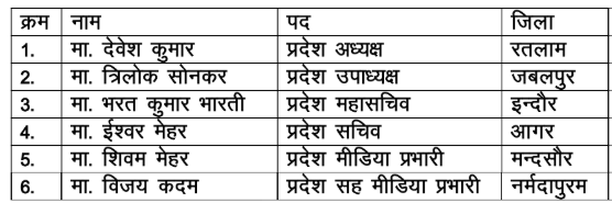 Madhya Pradesh State Committee Madhya Pradesh State Committee 2026 BVM Madhya Pradesh State Committee 2026 RACS Madhya Pradesh State Committee 2026