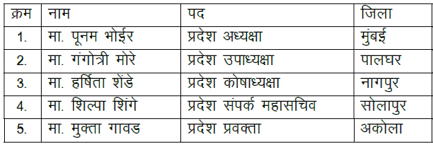 भारतीय विद्यार्थी मोर्चा प्रदेश कार्यनिष्पादन समिती, महाराष्ट्र राज्य