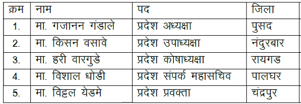 राष्ट्रीय आदिवासी छात्र संघ प्रदेश कार्यनिष्पादन समिती, महाराष्ट्र राज्य